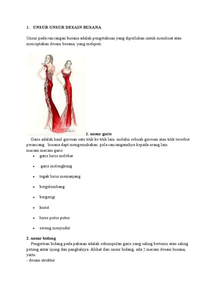 Deskripsi Modul Unsur-unsur dan Prinsip-prinsip Desain merupakan modul awal sebelum mempelajari modul Dasar Desain Busana. KAJIAN DESAIN BUSANA ADAT MINANGKABAU DAERAH KOTOGADANG. Tujuannya adalah untuk menambah keindahan dan kualitas dari objek tersebut. Penggunaan garis yang tepat pada busana ready-to-wear dapat mempengaruhi look pada sebuah busana.